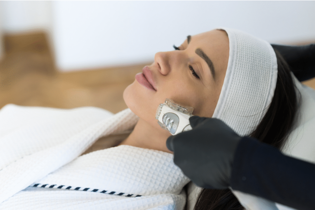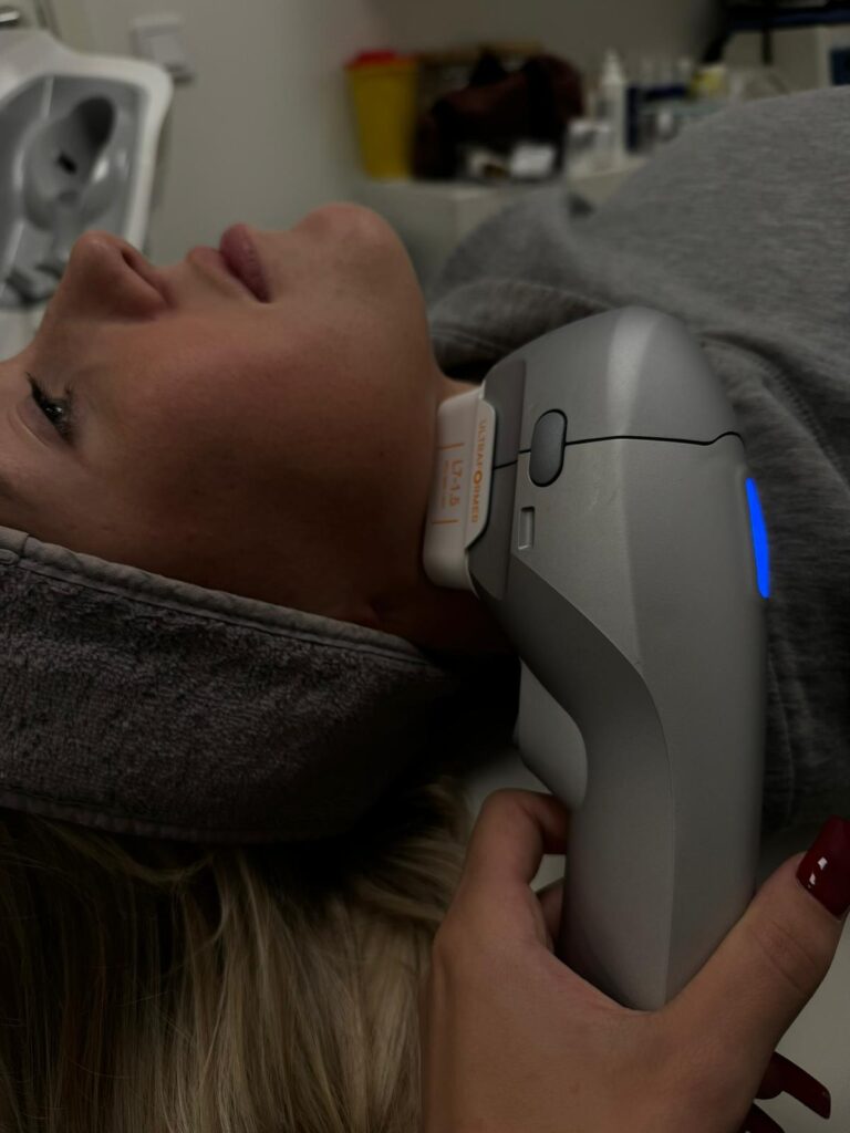 Selve behandlingen med fokuseret ultralyd aktiverer kollagenproduktionen i hudens dybe lag uden kirurgi eller nedetid.