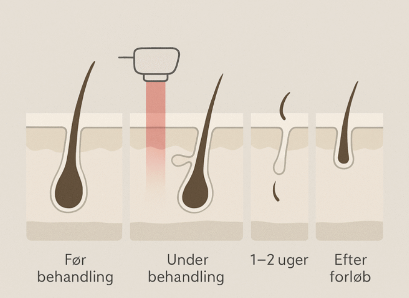 Laseren fungerer ved at udsende et koncentreret lys, som absorberes af melaninet (farven) i håret. Lyset omdannes til varme, der effektivt ødelægger hårsækken i vækstfasen.